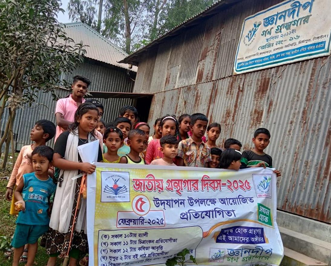 জাতীয় গ্রন্থাগার দিবস-২০২৫ উপলক্ষে র্যালী, চিত্রাংকন, কবিতা আবৃত্তি, বই পাঠ ও প্রিয় পাঠাগার/আমার গ্রাম বিষয়ে রচনা প্রতিযোগীতা অনুষ্ঠিত হয়।